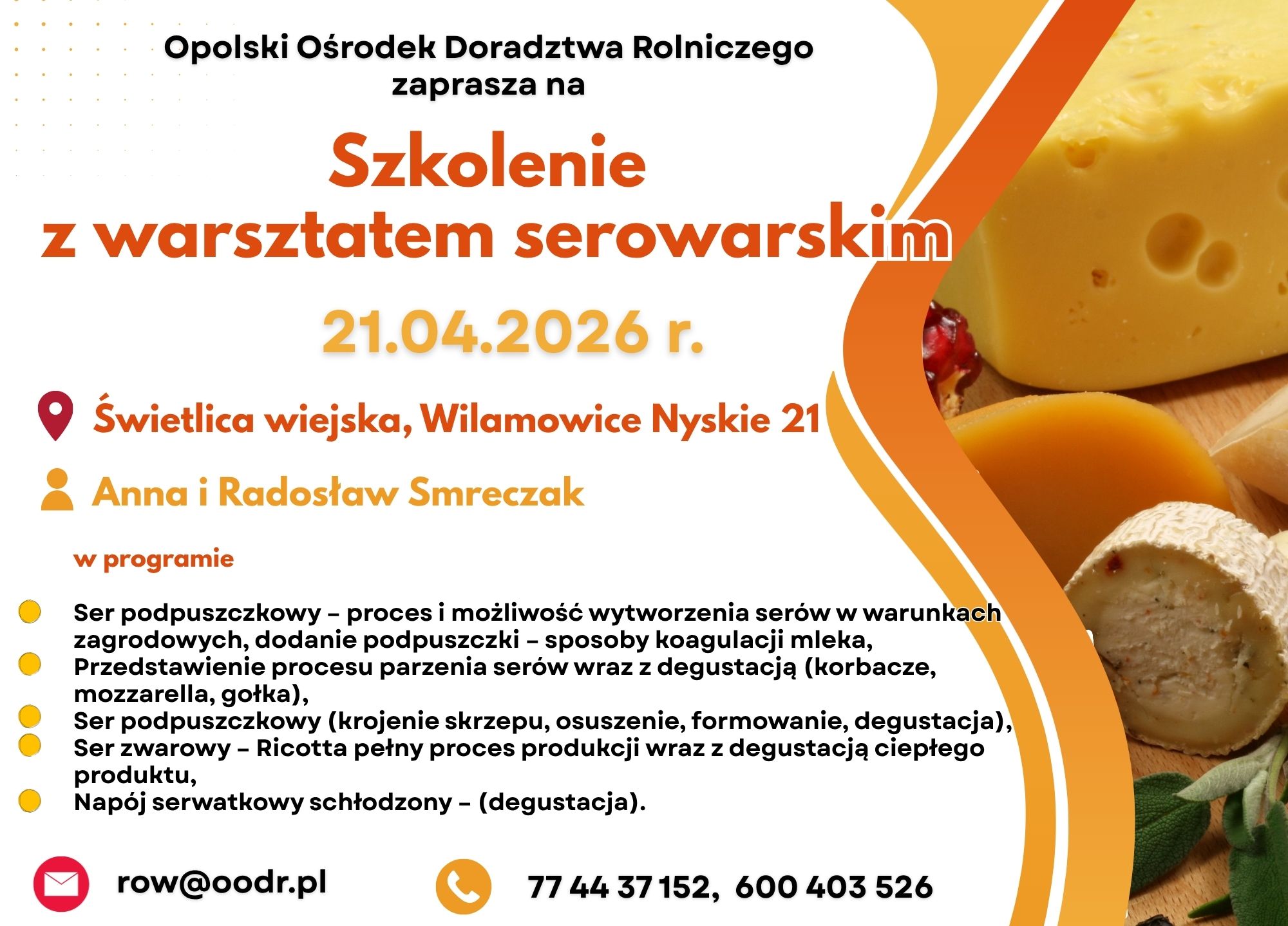 Opolski Ośrodek Doradztwa Rolniczego zaprasza na szkolenie połączone z warsztatem serowarskim