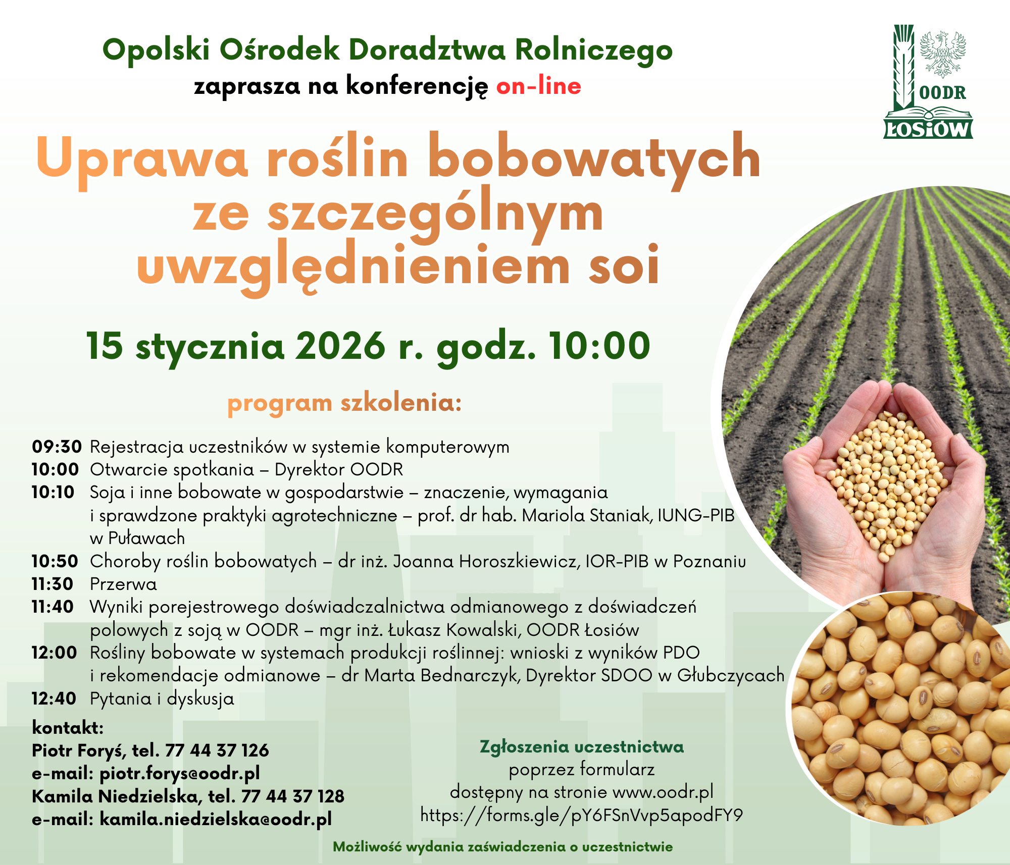 Opolski Ośrodek Doradztwa Rolniczego zaprasza na konferencję on-line pt.