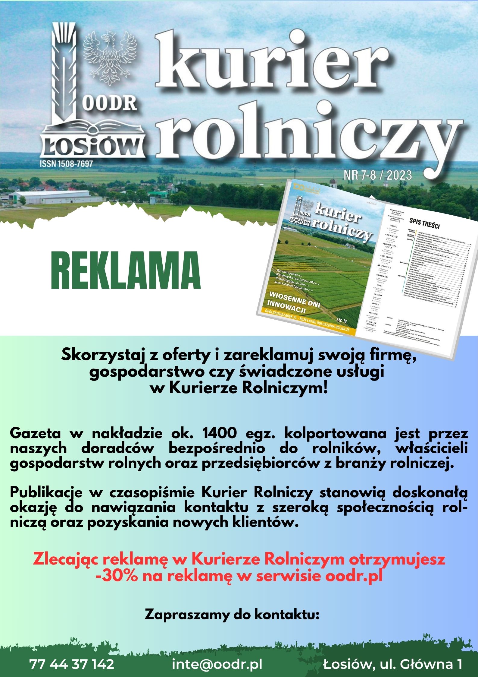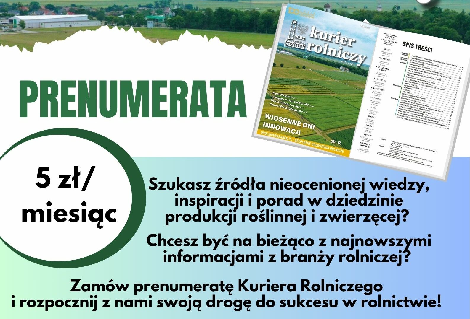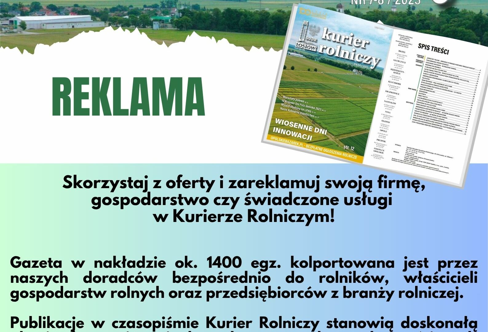 Opolski Ośrodek Doradztwa Rolniczego serdecznie zaprasza do skorzystania z oferty reklamowej w Kurierze Rolniczym.